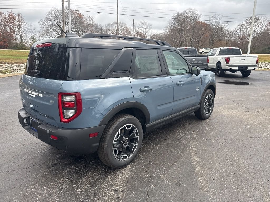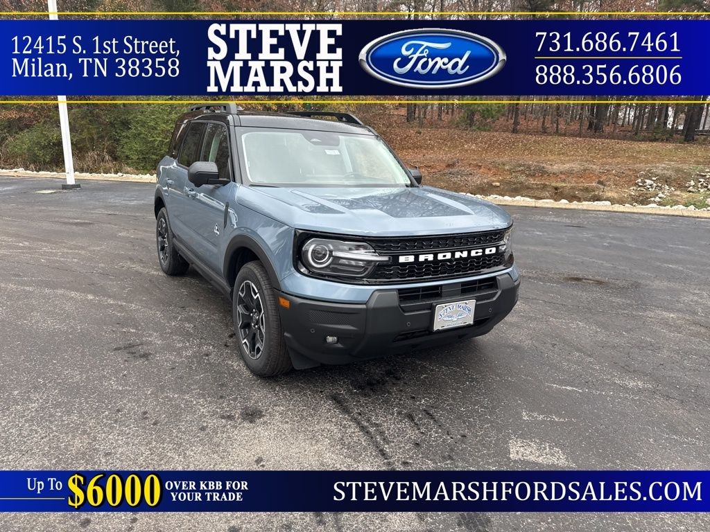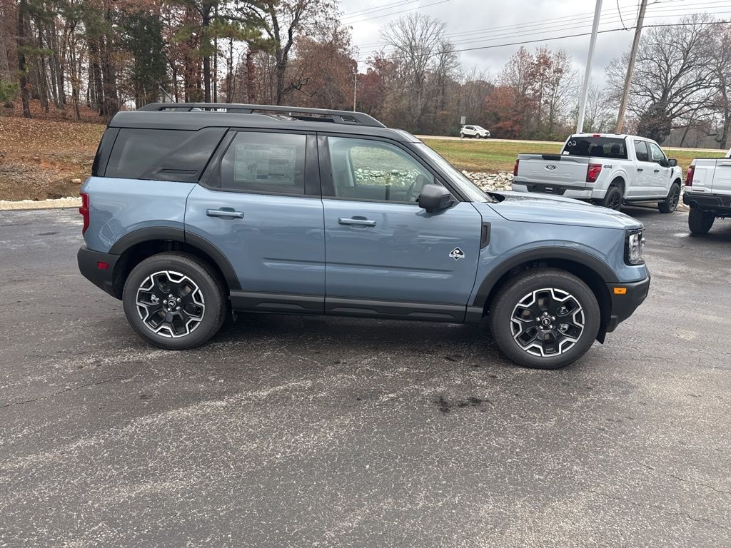 Azure / Gray 2025 Ford Bronco Sport Outer Banks 4WD 8-Speed Automatic 1.5L EcoBoost 4-Wheel Disc Brakes, 6 Speakers, ABS brakes, Air Conditioning, AM/FM radio: SiriusXM, AM/FM Stereo, Auto High-beam Headlights, Auto-dimming Rear-View mirror, Automatic temperature control, B&O Sound System by Bang & Olufsen, Brake assist, Connected Navigation, Delay-off headlights, Dual front impact airbags, Dual front side impact airbags, Electronic Stability Control, Emergency communication system: SYNC 4 911 Assist, Equipment Group 300A, Four wheel independent suspension, Front anti-roll bar, Front Bucket Seats, Front Center Armrest, Front Driver/Passenger Seat Back Map Pockets, Front dual zone A/C, Front fog lights, Front License Plate Bracket, Fully automatic headlights, Garage door transmitter, HD Radio, Heated door mirrors, Heated front seats, Heated steering wheel, Knee airbag, Low tire pressure warning, Memory seat, Occupant sensing airbag, Outer Banks Tech Package+, Overhead airbag, Panic alarm, Power door mirrors, Power driver seat, Power Moonroof, Power passenger seat, Power steering, Power windows, Premium Trimmed Front Bucket Seats w/Ebony/Roast, Radio data system, Rear anti-roll bar, Rear Parking Sensors, Rear window defroster, Rear window wiper, Remote keyless entry, Security system, SiriusXM, Speed control, Speed-sensing steering, Split folding rear seat, Steering wheel mounted audio controls, SYNC 4 w/Enhanced Voice Recognition, Telescoping steering wheel, Tilt steering wheel, Traction control, Wheels: 18" Ebony Black-Painted Aluminum.
