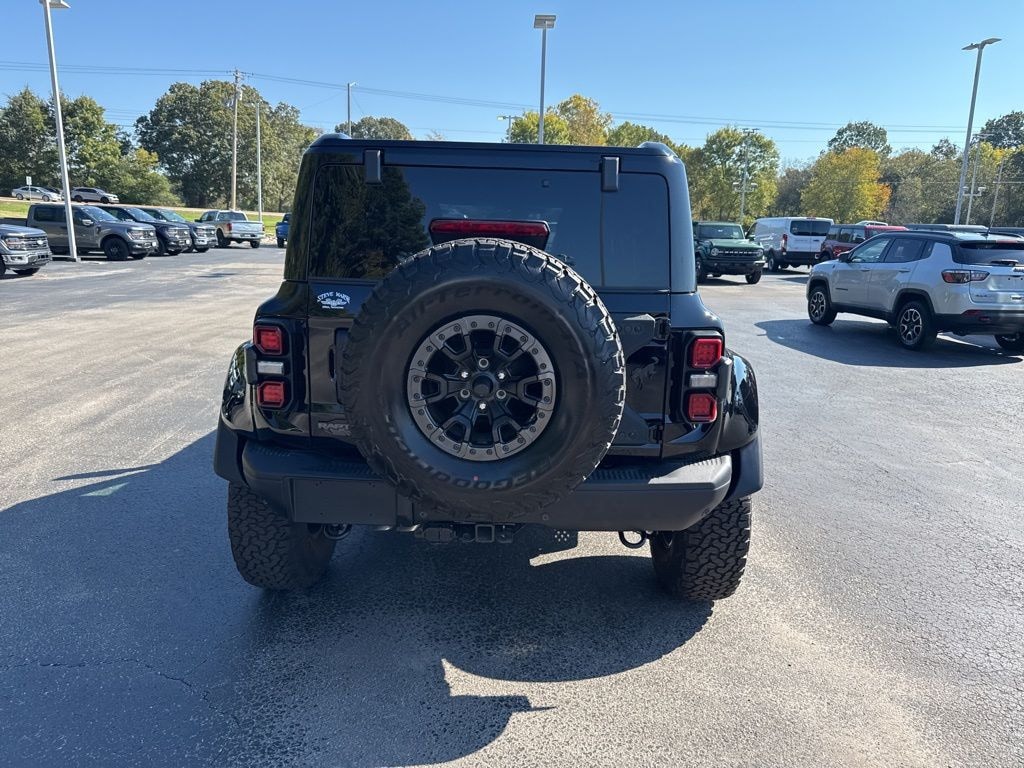 Shadow Black 2025 Ford Bronco Raptor 4WD 10-Speed Automatic 3.0L EcoBoost V6 12 Speakers, 4-Wheel Disc Brakes, ABS brakes, Air Conditioning, Alloy wheels, AM/FM radio: SiriusXM with 360L, Auto High-beam Headlights, Auto-dimming Rear-View mirror, Automatic temperature control, Brake assist, Compass, Connected Navigation, Convertible roof lining, Delay-off headlights, Driver door bin, Driver vanity mirror, Dual front impact airbags, Dual front side impact airbags, Electronic Stability Control, Emergency communication system: 911 Assist, Equipment Group 374A Lux Package, Exterior Parking Camera Rear, Front anti-roll bar, Front Bucket Seats, Front Center Armrest, Front dual zone A/C, Front fog lights, Front License Plate Bracket, Front reading lights, Front wheel independent suspension, Fully automatic headlights, Garage door transmitter, Glass rear window, Gloss Black Sideview Mirror Skull Caps, Hard Top Sound Deadening Headliner, Heated door mirrors, Heated front seats, Heated steering wheel, Illuminated entry, Integrated roll-over protection, Interior Carbon Fiber Pack, Leather Shift Knob, Low tire pressure warning, Marine Grade Vinyl Bucket Seats, Navigation system: Connected Navigation, Occupant sensing airbag, Outside temperature display, Overhead airbag, Overhead console, Panic alarm, Passenger door bin, Passenger vanity mirror, Power door mirrors, Power steering, Power windows, Radio data system, Radio: B&O Sound System by Bang & Olufsen, Raptor Shadow Black Appearance Package, Rear anti-roll bar, Rear seat center armrest, Rear window defroster, Rear window wiper, Rear-Window Defroster & Washer, Remote keyless entry, Security system, Shadow Black Painted Hard Top, SiriusXM w/360L, Speed control, Split folding rear seat, Steering wheel mounted audio controls, SYNC 4, Tachometer, Telescoping steering wheel, Tilt steering wheel, Traction control, Trip computer, Turn signal indicator mirrors, Variably intermittent wipers, Voltmeter, Wheels: 17" Black High Gloss-Painted Aluminum.