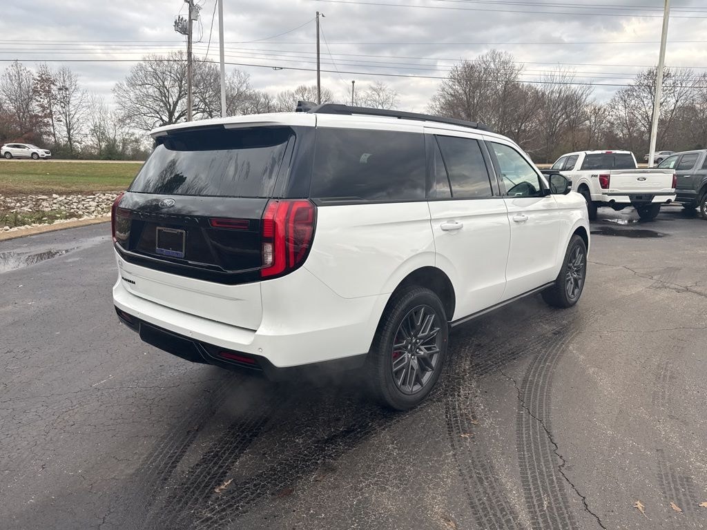 Oxford White 2025 Ford Expedition Platinum 4WD 10-Speed Automatic 3.5L V6 4WD, 10 Speakers, 2nd Row Power-Folding Captain's Chairs, 3.73 Axle Ratio, 3rd row seats: split-bench, 4-Wheel Disc Brakes, ABS brakes, Adjustable pedals, Air Conditioning, Alloy wheels, AM/FM radio: SiriusXM with 360L, Apple CarPlay/Android Auto, Auto High-beam Headlights, Auto-dimming door mirrors, Auto-dimming Rear-View mirror, Automatic temperature control, Black Belt Molding, Black Expedition Lettering On Hood, Black Headlamp Bezel w/Ebony Trim Applique, Black Platinum Badge On Tailgate, Black Roof Rails, BlueCruise Equipped (1-Year Plan), Brake assist, Bumpers: body-color, Carbon Black Front Bumper/Fascia, Compass, Connectivity Package (One-Time Purchase), Continuous Control Damping Suspension, Delay-off headlights, Driver door bin, Driver vanity mirror, Driver's Package, Dual front impact airbags, Dual front side impact airbags, Electronic Stability Control, Emergency communication system: 911 Assist, Engine Sound Enhancer, Equipment Group 600A Standard Package, Exterior Parking Camera Rear, Four wheel independent suspension, Front anti-roll bar, Front Bucket Seats, Front Center Armrest, Front dual zone A/C, Front reading lights, Fully automatic headlights, Garage door transmitter, Genuine wood dashboard insert, Genuine wood door panel insert, Heated & Ventilated Leather Front Captain's Chairs, Heated door mirrors, Heated front seats, Heated rear seats, Heated steering wheel, High Flow Exhaust System, Illuminated entry, Leather steering wheel, Low tire pressure warning, Memory seat, Navigation System, Occupant sensing airbag, Outside temperature display, Overhead airbag, Overhead console, Panic alarm, Passenger door bin, Passenger vanity mirror, Pedal memory, Power door mirrors, Power driver seat, Power moonroof: Vista Roof, Power passenger seat, Power steering, Power windows, Radio data system, Radio: B&O Sound System by Bang & Olufsen, Radio: B&O Unleashed Sound System by Bang & Olufsen, Rain sensing wipers, Rear air conditioning, Rear anti-roll bar, Rear reading lights, Rear Side Windows Laminated Glass, Rear window defroster, Rear window wiper, Reclining 3rd row seat, Red Brake Calipers, Remote keyless entry, Security system, Signature Grille Lighting, SiriusXM w/360L, Speed control, Speed-sensing steering, Speed-Sensitive Wipers, Split folding rear seat, Spoiler, Stealth Appearance Package, Stealth Performance Package, Steering wheel memory, Steering wheel mounted audio controls, Tachometer, Telescoping steering wheel, Tilt steering wheel, Traction control, Trip computer, Turn signal indicator mirrors, Variably intermittent wipers, Ventilated front seats, Voltmeter, Wheels: 22" Magnetite Painted Aluminum.