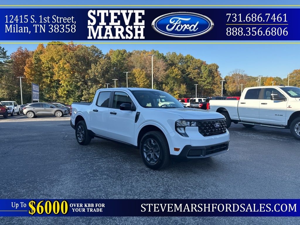 Oxford White 2025 Ford Maverick XLT AWD CVT 2.5L I-4 Hybrid 2.5L I-4 Hybrid, 4-Wheel Disc Brakes, 400W Inverter w/USB Console Rear, 6 Speakers, ABS brakes, Air Conditioning, AM/FM radio: SiriusXM with 360L, Apple CarPlay/Android Auto, Auto High Beams, Auto High-beam Headlights, Automatic temperature control, Brake assist, Delay-off headlights, Dual front impact airbags, Dual front side impact airbags, Electronic Stability Control, Emergency communication system: SYNC 4 911 Assist, Equipment Group 301A, Exterior Parking Camera Rear, Four wheel independent suspension, Front anti-roll bar, Front Bucket Seats, Front License Plate Bracket, Heated Mirror w/Painted Black Skull Caps, Heated Seats, Knee airbag, LED Box Lighting, Low tire pressure warning, Occupant sensing airbag, Overhead airbag, Power door mirrors, Power steering, Power windows, Radio data system, Radio: AM/FM Stereo w/6 Speakers, Rear anti-roll bar, Rear-View Camera, Remote keyless entry, Remote Start System, SiriusXM w/360L, Soft Vinyl Wrapped Heated Steering Wheel, Speed-sensing steering, Steering wheel mounted audio controls, SYNC 4 w/Enhanced Voice Recognition, Telescoping steering wheel, Tilt steering wheel, Traction control, Unique Cloth Front Bucket Seats, Wheels: 17" Carbonized Gray Painted Aluminum, XLT Luxury Package.