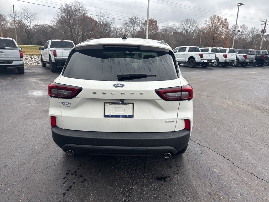 star white metallic tri-coat 2026 Ford Escape Hybrid ST-Line Select AWD eCVT 2.5L iVCT 2.5L iVCT, 10-Way Power Driver's Seat, 10-Way Power Driver's Seat w/Memory, 12.3" Digital Productivity Screen in Instrument Panel Cluster, 2.91 Axle Ratio, 360-Degree Camera with Split View, 4-Way Manual Front Passenger Seat, 4-Wheel Disc Brakes, 6 Speakers, 6-Way Power Front Passenger Seat, 8-Way Power Driver Seat, ABS brakes, Adaptive Cruise Control with Stop-and-Go, Air Conditioning, Alloy wheels, AM/FM radio: SiriusXM 360L, Auto High-beam Headlights, Automatic temperature control, B&O Sound System by Bang & Olufsen, Body Color Mirrors, Brake assist, Bumpers: body-color, Compass, Connected Navigation (1-Year Included), Delay-off headlights, Driver door bin, Driver vanity mirror, Dual front impact airbags, Dual front side impact airbags, Electronic Fuel Door Release, Electronic Stability Control, Emergency communication system: SYNC 4 911 Assist, Equipment Group 400A, Evasive Steering Assist, Ford App, Ford Co-Pilot360 Assist 2.0, Four wheel independent suspension, Front anti-roll bar, Front Bucket Seats, Front Center Armrest, Front dual zone A/C, Front fog lights, Front reading lights, Fully automatic headlights, HD Radio, Heated door mirrors, Heated front seats, Heated steering wheel, Illuminated entry, Intersection Assist, Knee airbag, Low tire pressure warning, Memory Package, Memory seat, Neutral Towing Capability, Occupant sensing airbag, Outside temperature display, Overhead airbag, Overhead console, Panic alarm, Partial Vinyl/Cloth Heated Front Sport Contour Bucket Seats with Red Stitching, Passenger door bin, Passenger vanity mirror, Pedestrian Alert Sounder, Power door mirrors, Power driver seat, Power Liftgate, Power steering, Power windows, Predictive Speed Assist, Radio data system, Radio: AM/FM Stereo with SiriusXM 360L, Rear anti-roll bar, Rear Parking Sensor, Rear reading lights, Rear seat center armrest, Rear window defroster, Rear window wiper, Remote keyless entry, Reverse Brake Assist, Speed control, Speed-sensing steering, Speed-Sensitive Wipers, Split folding rear seat, Spoiler, Sport steering wheel, Steering wheel mounted audio controls, SYNC 4, SYNC 4 with Enhanced Voice Recognition, Tachometer, Tech Pack #2, Telescoping steering wheel, Tilt steering wheel, Traction control, Trip computer, Variably intermittent wipers, Wheels: 18" Rock Metallic Painted Aluminum, Wireless Charging Pad.