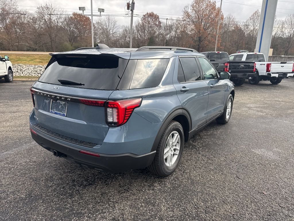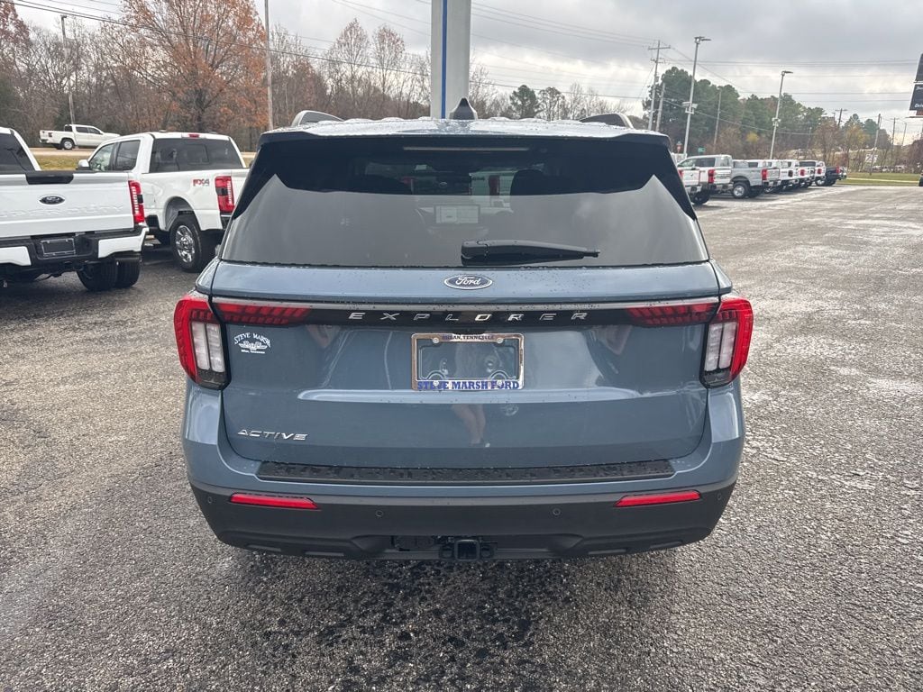 Vapor Blue 2026 Ford Explorer Active RWD 10-Speed Automatic 2.3L EcoBoost I-4 3rd row seats: bench, 4-Wheel Disc Brakes, 6 Speakers, 8 USB Ports, ABS brakes, Active Badging, Active Noise Cancellation, Air Conditioning, Alloy wheels, AM/FM radio: SiriusXM with 360L, AM/FM Stereo, Apple CarPlay/Android Auto, Auto High-beam Headlights, Automatic temperature control, Black Lower Bodyside Cladding w/Chrome Accent, Black Roof-Rack Side Rails, Brake assist, Bumpers: body-color, Compass, Delay-off headlights, Driver door bin, Driver vanity mirror, Dual front impact airbags, Dual front side impact airbags, Electronic Stability Control, Emergency communication system: 911 Assist, Equipment Group 200A Standard Package, Exterior Parking Camera Rear, Four wheel independent suspension, Front anti-roll bar, Front Bucket Seats, Front Center Armrest, Front dual zone A/C, Front reading lights, Fully automatic headlights, Heated door mirrors, Illuminated entry, Knee airbag, Low tire pressure warning, Manual-Folding Sideview Mirrors, Navigation System, Occupant sensing airbag, Outside temperature display, Overhead airbag, Overhead console, Panic alarm, Passenger door bin, Passenger vanity mirror, Power driver seat, Power Liftgate, Power steering, Power windows, Rear air conditioning, Rear anti-roll bar, Rear reading lights, Rear window defroster, Rear window wiper, Remote keyless entry, Security system, Speed control, Speed-sensing steering, Speed-Sensitive Wipers, Split folding rear seat, Spoiler, Steering wheel mounted audio controls, Tachometer, Telescoping steering wheel, Tilt steering wheel, Traction control, Trip computer, Unique Cloth Captain's Chairs, Unique Cloth Heated Captain's Chairs, Variably intermittent wipers, Vinyl-Wrapped Steering Wheel, Wheels: 18" Sparkle Silver-Painted Aluminum.