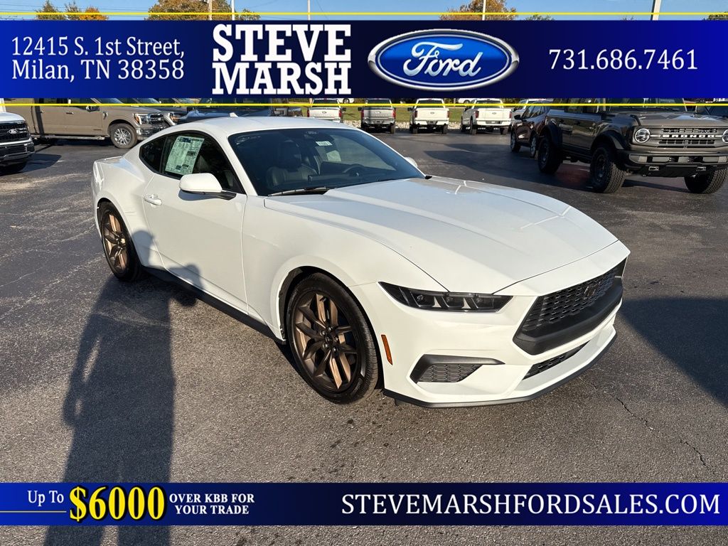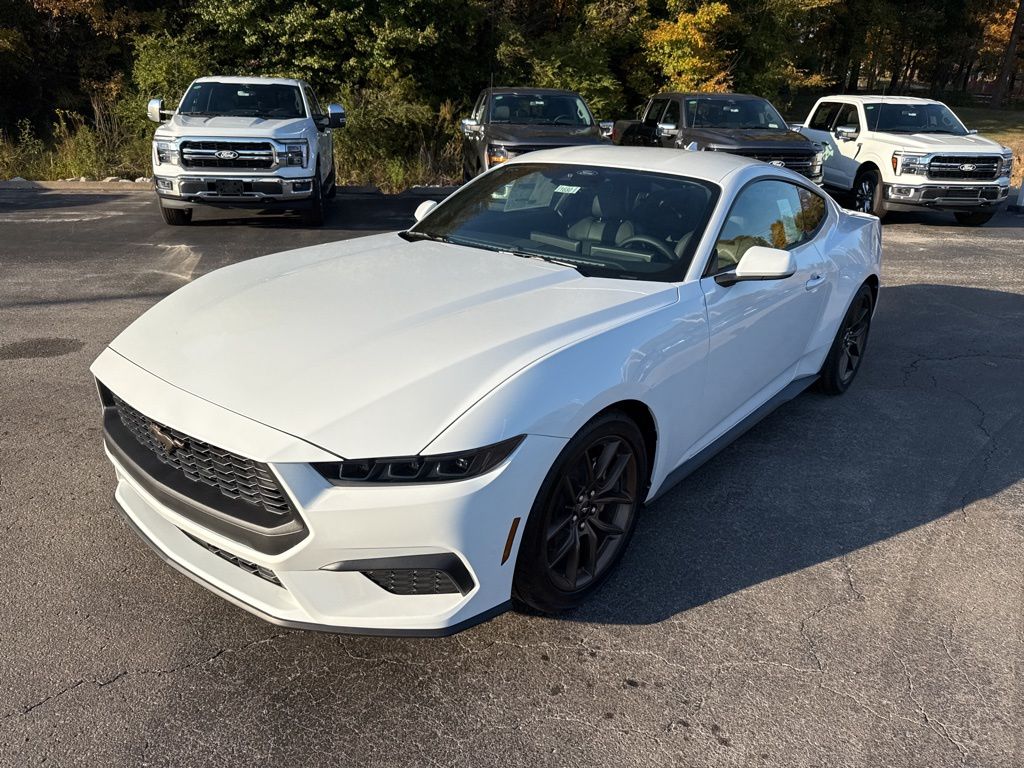 Oxford White 2026 Ford Mustang EcoBoost Premium RWD 10-Speed Automatic EcoBoost 2.3L I4 GTDi DOHC Turbocharged VCT 4-Wheel Disc Brakes, 9 Speakers, ABS brakes, ActiveX Trimmed Bucket Seats, Adaptive Cruise Control w/Stop & Go, Air Conditioning, Alloy wheels, AM/FM radio: SiriusXM with 360L, AM/FM Stereo, Auto High-beam Headlights, Automatic temperature control, B&O Sound System by Bang & Olufsen w/12 Speakers, Brake assist, Bronze Appearance Package, Bumpers: body-color, Climate Controlled Heated/Cooled Front Seats, Compass, Delay-off headlights, Driver door bin, Driver vanity mirror, Dual front impact airbags, Dual front side impact airbags, Electronic Stability Control, Emergency communication system: 911 Assist, Equipment Group 200A Standard Package, Exterior Parking Camera Rear, Ford Co-Pilot360 Assist+, Four wheel independent suspension, Front anti-roll bar, Front Bucket Seats, Front Center Armrest, Front dual zone A/C, Front reading lights, Fully automatic headlights, HD Radio, Heated front seats, Heated steering wheel, Illuminated entry, Knee airbag, Lane-Keeping System w/Lane Keeping Aid, Leather Shift Knob, Leather steering wheel, Low tire pressure warning, Occupant sensing airbag, One-Year Connected Navigation, Outside temperature display, Overhead airbag, Overhead console, Panic alarm, Passenger door bin, Passenger vanity mirror, Power door mirrors, Power driver seat, Power passenger seat, Power steering, Power windows, Pre-Collision Assist w/Automatic Emergency Braking, Radio data system, Rain sensing wipers, Rear anti-roll bar, Rear Parking Sensors, Rear window defroster, Remote keyless entry, Sinister Bronze Front & Rear Pony Badges, SiriusXM w/360L, Speed control, Speed-sensing steering, Speed-Sensitive Wipers, Split folding rear seat, Sport steering wheel, Steering wheel mounted audio controls, SYNC 4, Tachometer, Telescoping steering wheel, Tilt steering wheel, Traction control, Trip computer, Variably intermittent wipers, Ventilated front seats, Voltmeter, Wheels: 19" x 8.5" Sinister Bronze Painted Alum.