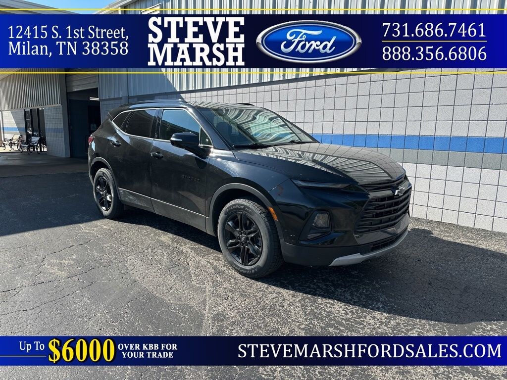 Black 2021 Chevrolet Blazer LT FWD 9-Speed Automatic 2.0L Turbocharged 170 Amp Alternator, 4-Wheel Disc Brakes, 6 Speakers, 6-Speaker Audio System Feature, ABS brakes, Air Conditioning, AM/FM radio: SiriusXM, Apple CarPlay/Android Auto, Auto High-beam Headlights, Automatic temperature control, Black Lug Nut & Wheel Lock Kit (LPO), Black Roof Rails, Brake assist, Bumpers: body-color, Cargo Package (LPO), Child-Seat-Sensing Airbag, Convenience & Driver Confidence Package, Dual front impact airbags, Dual front side impact airbags, Electronic Stability Control, Emergency communication system: OnStar and Chevrolet connected services capable, Exterior Parking Camera Rear, Four wheel independent suspension, Front & Rear Black Bowtie Emblems (LPO), Front anti-roll bar, Front Bucket Seats, Front dual zone A/C, Heated door mirrors, Heated Driver & Front Passenger Seats, High-Intensity Discharge Headlights, Inside Rear-View Auto-Dimming Mirror, Knee airbag, Lane Change Alert w/Side Blind Zone Alert, Low tire pressure warning, Midnight/Sport Edition, Occupant sensing airbag, Outside Heated Power-Adjustable Body-Color Mirrors, Overhead airbag, Power door mirrors, Power driver seat, Power steering, Power windows, Preferred Equipment Group 2LT, Premium Cloth Seat Trim, Radio data system, Radio: Chevrolet Infotainment 3 System, Rear anti-roll bar, Rear Cross Traffic Alert, Rear Park Assist w/Audible Warning, Rear Power Programmable Liftgate, Rear window defroster, Remote keyless entry, Remote Start, Retractable Cargo Shade, Ride & Handling Suspension, Security system, SiriusXM Radio, Speed-sensing steering, Spoiler, Steering wheel mounted audio controls, Telescoping steering wheel, Tilt steering wheel, Traction control, Universal Home Remote, Vertical Cargo Net (LPO), Wheels: 18" Gloss Black Painted Aluminum.