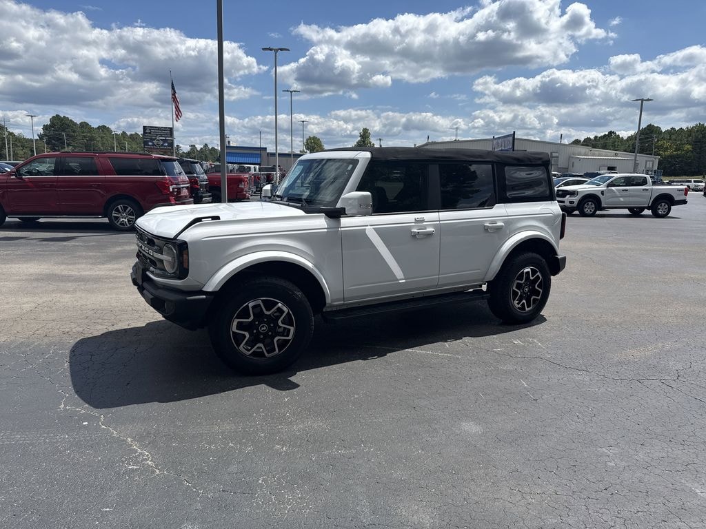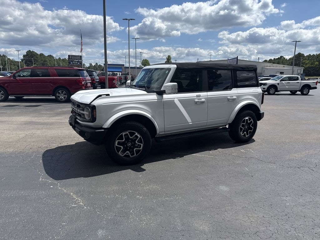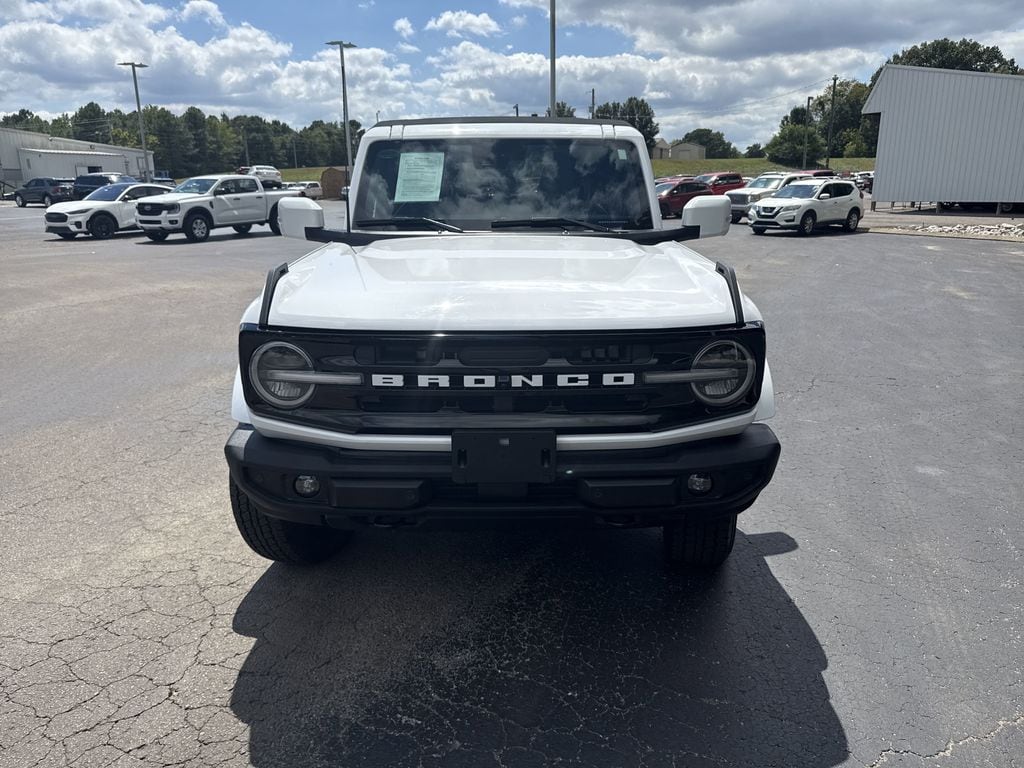 Oxford White 2022 Ford Bronco Outer Banks 4WD 10-Speed Automatic 2.7L EcoBoost V6 12" LCD Capacitive Touchscreen w/Swipe Capability, 18" Bright Machined Aluminum Wheels, 360-Degree Camera, 4-Wheel Disc Brakes, ABS brakes, Additional Sound Deadening, AM/FM radio: SiriusXM with 360L, Auto High-Beam Headlamps, Auto High-beam Headlights, Automatic temperature control, Base LED Headlamps, BLIS Blind Spot Information System, Compass, Dual front impact airbags, Dual front side impact airbags, Dual-Zone Electronic Automatic Temperature Control, Electronic Stability Control, Emergency communication system: 911 Assist, Equipment Group 313A High Package, Front anti-roll bar, Front License Plate Bracket, Front Parking Sensors, Front wheel independent suspension, Fully automatic headlights, Heated door mirrors, Heated front seats, Illuminated entry, Information on Demand Panel, Integrated roll-over protection, Keyless Entry Keypad, LED Signature Lighting, Low tire pressure warning, Navigation system: Connected Navigation, Occupant sensing airbag, Overhead airbag, Power windows, Rear Parking Sensors, Rear-View Camera, Remote keyless entry, Remote Start System, Sideview Mirrors, Steering wheel mounted audio controls, SYNC 4, Traction control.