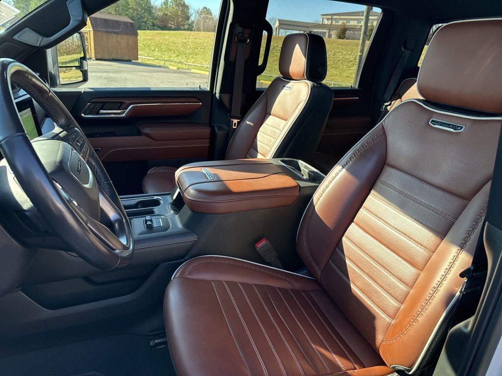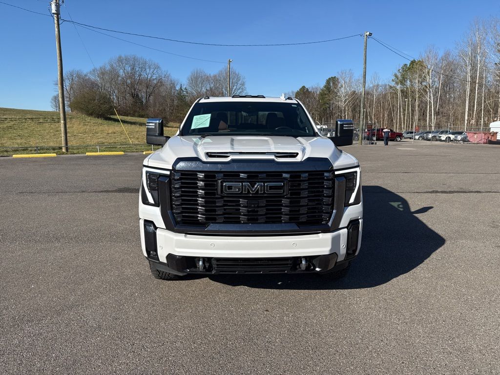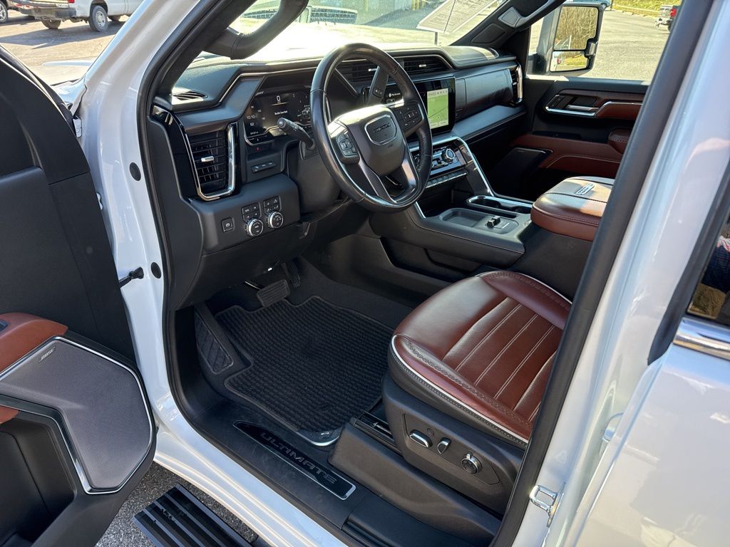 White Frost Tricoat 2024 GMC Sierra 2500HD Denali Ultimate 4WD 10-Speed Automatic Duramax 6.6L V8 Turbodiesel 10-Speed Automatic, 4WD, Alpine Umber Leather, 12 Speakers, 120-Volt Bed Mounted Power Outlet, 120-Volt Instrument Panel Power Outlet, 16-Way Power Driver Seat Adjuster w/Lumbar, 16-Way Power Passenger Seat Adjuster w/Lumbar, 2 Charge-Only Rear USB Ports, 2 Charge/Data USB Ports Inside Center Console, 2 USB Ports, 2-Speed Active Transfer Case, 220-Amp Alternator, 3.73 Rear Axle Ratio (DISC), 4-Wheel Disc Brakes, 5th Wheel & Gooseneck Trailer Wiring Provisions, ABS brakes, Air Conditioning, Alloy wheels, AM/FM radio: SiriusXM with 360L, Apple CarPlay/Android Auto, Auto High-beam Headlights, Auto-dimming door mirrors, Auto-dimming Rear-View mirror, Automatic Emergency Braking, Automatic temperature control, Bed View Camera w/2 Trailer Camera Provisions, Block heater, Bose Premium Series 12-Speaker System, Brake assist, Buckle to Drive, Bumpers: body-color, Compass, Deep-Tinted Glass, Delay-off headlights, Driver door bin, Driver Memory, Driver vanity mirror, Dual front impact airbags, Dual front side impact airbags, Dual Heavy-Duty 70 Amp Battery, Electric Rear-Window Defogger, Electronic Stability Control, Emergency communication system: OnStar and GMC connected services capable, Floor-Mounted Center Console, Following Distance Indicator, Forward Collision Alert, Front anti-roll bar, Front Bucket Seats, Front Center Armrest, Front dual zone A/C, Front fog lights, Front License Plate Kit, Front Pedestrian Braking, Front Rain-Sensing Wipers, Front reading lights, Front wheel independent suspension, Full Grain Leather Seat Trim, Fully automatic headlights, Garage door transmitter, Genuine wood dashboard insert, Genuine wood door panel insert, GMC Connected Access Capable, Gooseneck/5th Wheel Prep Package, HD Surround Vision, Heads-Up Display, Heated 2nd Row Outboard Seats, Heated door mirrors, Heated Driver & Front Outboard Passenger Seats, Heated front seats, Heated rear seats, Heated steering wheel, Hill Descent Control, Hitch Guidance w/Hitch View, Illuminated entry, In-Vehicle Trailering System App, Inside Rearview Auto-Dimming Rear Camera Mirror, Integrated Trailer Brake Controller, IntelliBeam Automatic High Beam On/Off, Keyless Open & Start, Lane Departure Warning System, Leather steering wheel, LED Cargo Area Lighting, LED Smoked Amber Roof Marker Lamps, Low tire pressure warning, Manual Tilt-Wheel/Telescoping Steering Column, Max Trailering Package, Memory seat, Multicolor 15" Diagonal Head-Up Display, Navigation System, Occupant sensing airbag, Off-Road Suspension, OnStar & GMC Connected Services Capable, Outside temperature display, Overhead airbag, Overhead console, Panic alarm, Passenger door bin, Passenger vanity mirror, Pickup Box, Power door mirrors, Power driver seat, Power Front Passenger Windows w/Express Up/Down, Power moonroof, Power passenger seat, Power Sliding Rear Window w/Defogger, Power steering, Power Sunroof, Power windows, Preferred Equipment Group 5SB, Premium audio system: Premium GMC Infotainment System, Push Button Start, Radio: AM/FM w/Premium GMC Infotainment System, Rain sensing wipers, Rear Cross Traffic Alert, Rear reading lights, Rear seat center armrest, Rear step bumper, Rear Wheelhouse Liners, Rear window defroster, Remote keyless entry, Remote Vehicle Starter System, Safety Alert Seat, Security system, Signature Denali Grille in Vadar Chrome, SiriusXM w/360L, Speed control, Speed-sensing steering, Split folding rear seat, Spray-On Bedliner w/Denali Logo, Steering Wheel Audio Controls, Steering wheel mounted audio controls, Tachometer, Technology Package, Telescoping steering wheel, Tilt steering wheel, Traction control, Trailer Cam Provisions & Trailer Viewing Software, Trailer Side Blind Zone Alert, Trailer Tire Pressure Monitor Sensors, Trip computer, Turn signal indicator mirrors, Ultrasonic Front & Rear Park Assist, Unauthorized Entry Theft-Deterrent System, Universal Home Re