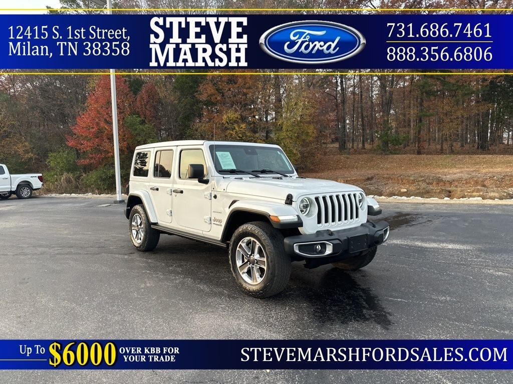 Bright White Clearcoat 2019 Jeep Wrangler Unlimited Sahara 4WD 8-Speed Automatic 2.0L I4 DOHC 1-Year SiriusXM Guardian Trial, 3.45 Rear Axle Ratio, 4-Wheel Disc Brakes, 4G LTE Wi-Fi Hot Spot, 5-Year SiriusXM Traffic Service, 5-Year SiriusXM Travel Link Service, 8 Speakers, 8.4" Radio & Premium Audio Group, 8.4" Touchscreen Display, ABS brakes, Advanced Brake Assist, Advanced Safety Group, Air Conditioning, Alloy wheels, Alpine Premium Audio System, AM/FM radio: SiriusXM, Anti-Spin Differential Rear Axle, Apple CarPlay/Android Auto, Auto-Dimming Rear-View Mirror, Automatic temperature control, Blind Spot & Cross Path Detection, Brake assist, Cloth Low-Back Bucket Seats, Cold Weather Group, Compass, Daytime Running Lamps LED Accents, Delay-off headlights, Driver door bin, Driver vanity mirror, Dual front impact airbags, Dual front side impact airbags, Electronic Stability Control, Emergency/Assistance Call, For Details, Visit DriveUconnect.ca, Front anti-roll bar, Front Bucket Seats, Front Center Armrest w/Storage, Front dual zone A/C, Front fog lights, Front LED Fog Lamps, Front reading lights, Full Speed Forward Collision Warning Plus, Fully automatic headlights, Garage door transmitter, GPS Navigation, HD Radio, Heated door mirrors, Heated Front Seats, Heated Steering Wheel, Heavy Duty Suspension w/Gas Shocks, Illuminated entry, Integrated roll-over protection, Leather steering wheel, LED Lighting Group, LED Reflector Headlamps, LED Taillamps, Low tire pressure warning, Non-Lock Fuel Cap w/o Discriminator, Occupant sensing airbag, Outside temperature display, Panic alarm, ParkSense Rear Park Assist System, ParkView Rear Back-Up Camera, Passenger door bin, Passenger vanity mirror, Power door mirrors, Power steering, Power Top Quarter Window Storage Bag, Power windows, Quick Order Package 28G, Radio data system, Radio: Uconnect 4 w/7" Display, Radio: Uconnect 4C Nav w/8.4" Display, Rear anti-roll bar, Rear reading lights, Remote keyless entry, Remote Proximity Keyless Entry, Remote Start System, Removable Rear Quarter Windows, Safety Group, Security system, SiriusXM Traffic Plus, SiriusXM Travel Link, Sky 1-Touch Power Top, Speed control, Split folding rear seat, Steering wheel mounted audio controls, Tachometer, Telescoping steering wheel, Tilt steering wheel, Traction control, Trip computer, Variably intermittent wipers, Voltmeter, Wheels: 18" x 7.5" Polished w/Gray Spokes.