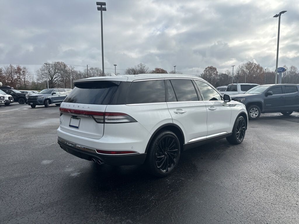 Pristine White 2021 Lincoln Aviator Reserve AWD 10-Speed Automatic 3.0L V6 14 Speakers, 2nd Row Bench Seat, 3.58 Axle Ratio, 30-Way Perfect Position Seats w/Active Motion, 3rd row seats: split-bench, 4-Pin & 7-Pin Connectors, 4-Wheel Disc Brakes, ABS brakes, Active Park Assist Plus, Adaptive Cruise Control w/Traffic Jam Assist, Adaptive Pixel LED Headlamps, Adaptive suspension, Adaptive Suspension w/Road Preview, Air Conditioning, Air Glide Suspension w/Dynamic Lower Entry, Alloy wheels, AM/FM radio: SiriusXM, Audio memory, Auto Air Refresh, Auto Heated/Ventilated Driver & Passenger Seats, Auto High-beam Headlights, Auto-dimming door mirrors, Auto-dimming Rear-View mirror, Automatic temperature control, Blind Spot Detection w/Cross Traffic Alert, Brake assist, Bumpers: body-color, Class IV Hitch & Wiring, Class IV Trailer Tow Package, Compass, Convenience Package, Delay-off headlights, Driver door bin, Driver vanity mirror, Dual front impact airbags, Dual front side impact airbags, Dynamic Handling Package, Electronic Stability Control, Elements Package Plus, Emergency communication system, Equipment Group 202A, Evasive Steering Assist, Four wheel independent suspension, Front anti-roll bar, Front Bucket Seats, Front Center Armrest, Front dual zone A/C, Front fog lights, Front License Plate Bracket, Front reading lights, Fully automatic headlights, Garage door transmitter, Head-Up Display, Heated door mirrors, Heated front seats, Heated Steering Wheel, Heated VisioBlade Wipers, Heated/Ventilated 2nd Row Outboard Seats, HVAC memory, Illuminated entry, Illumination Package, Knee airbag, Lincoln Co-Pilot360 Plus, Lincoln Lit Star in Grille, Low tire pressure warning, Luxury Package, Memory seat, Navigation System, Occupant sensing airbag, Outside temperature display, Overhead airbag, Overhead console, Panic alarm, Passenger door bin, Passenger vanity mirror, Phone As A Key, Power door mirrors, Power driver seat, Power Liftgate, Power moonroof: Panoramic Vista Roof, Power passenger seat, Power steering, Power windows, Premium Lthr Heated/Ventilated Fnt Captain's Chairs, Radio data system, Radio: Revel AM/FM Audio System w/14 Speakers, Radio: Revel Ultima 3D Audio System w/28 Speakers, Rain sensing wipers, Rear air conditioning, Rear anti-roll bar, Rear audio controls, Rear Door Sunshades, Rear dual zone A/C, Rear reading lights, Rear window defroster, Rear window wiper, Remote keyless entry, Reverse Brake Assist, Security system, SiriusXM, Smart Trailer Tow, Speed control, Speed-Sensitive Wipers, Split folding rear seat, Spoiler, Steering wheel memory, Steering wheel mounted A/C controls, Steering wheel mounted audio controls, SYNC 3 Communication & Entertainment System, Tachometer, Telescoping steering wheel, Tilt steering wheel, Traction control, Trailer Sway Control, Trip computer, Turn signal indicator mirrors, Variably intermittent wipers, Wheels: 20" Bright-Machined Aluminum, Wheels: 22" Bright-Machined Aluminum, Wireless Charging Pad.