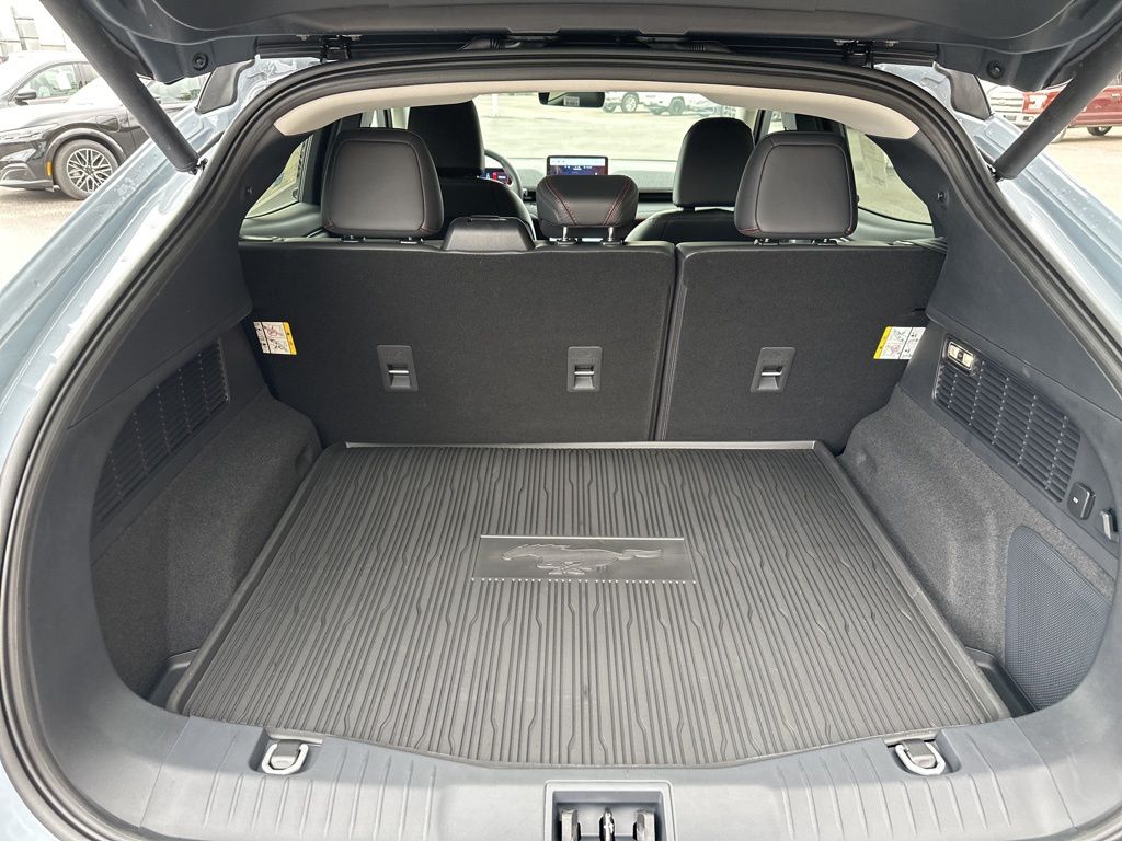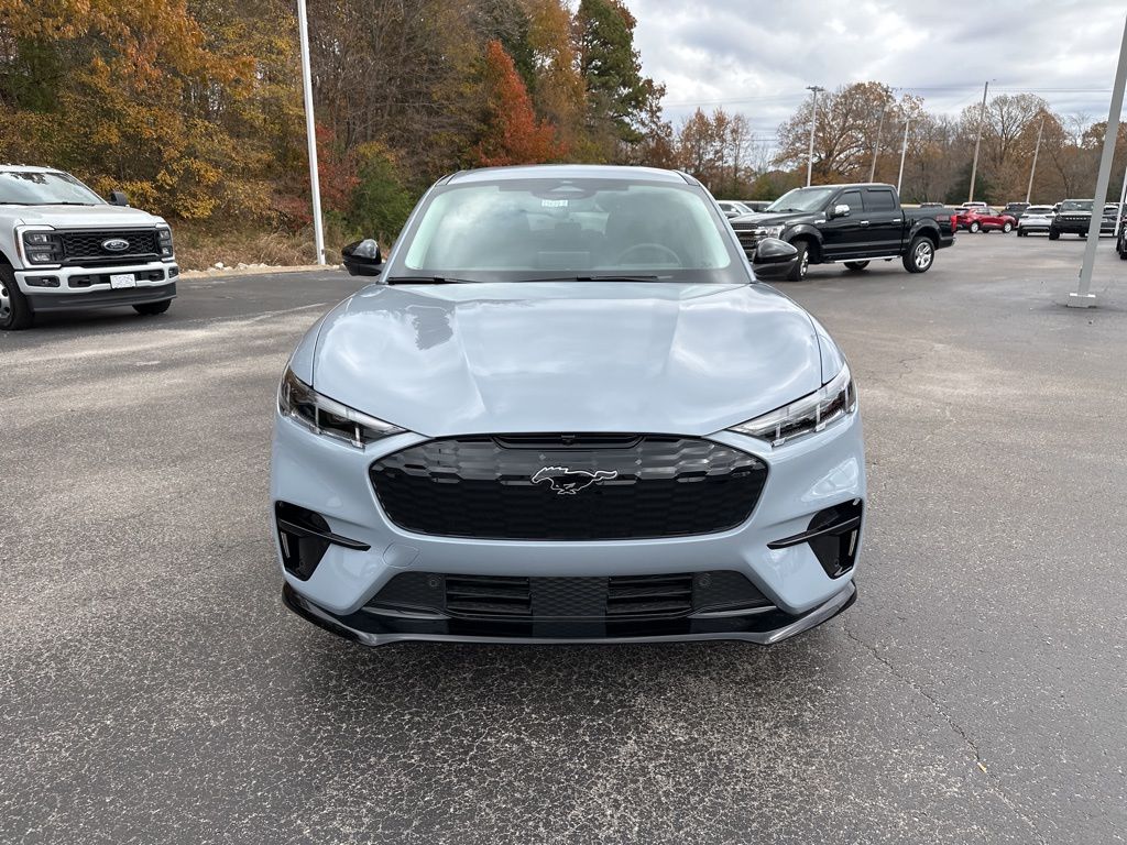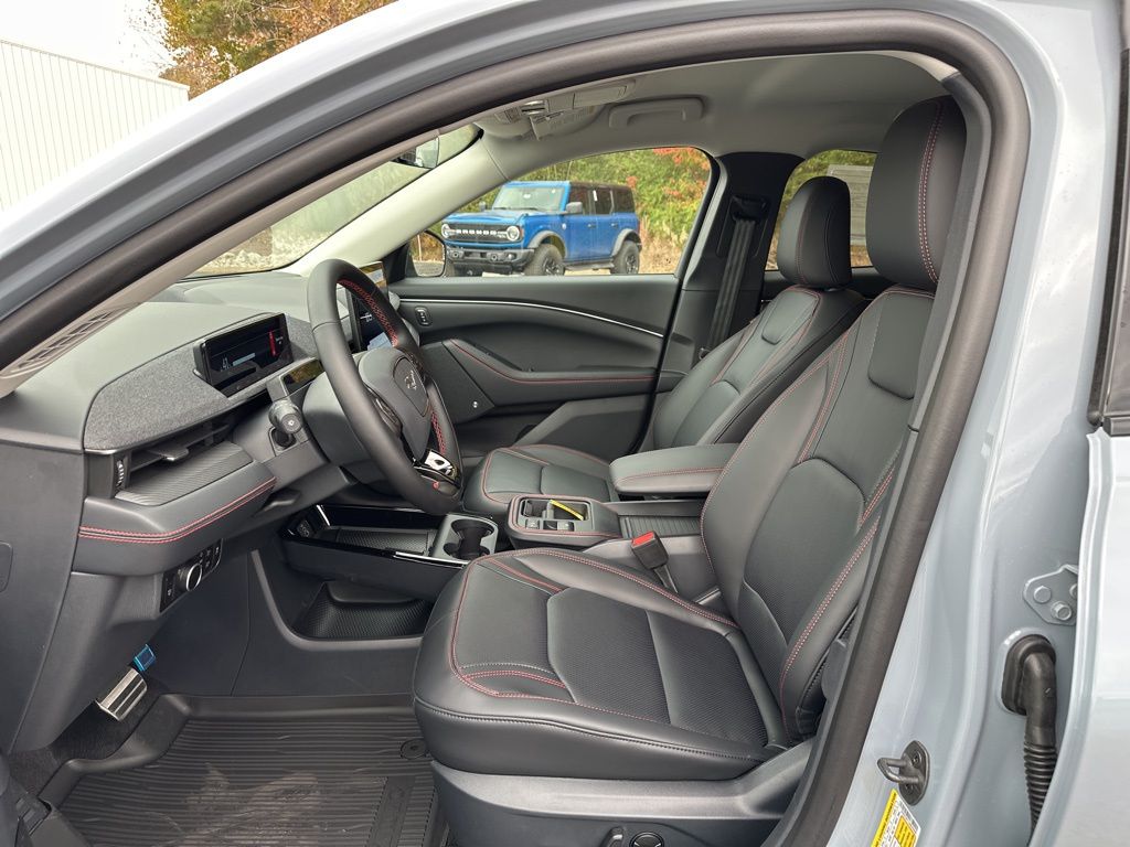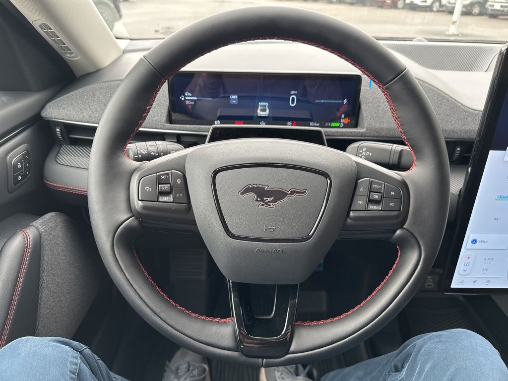 Glacier Gray Metallic TriCoat 2025 Ford Mustang Mach-E Premium RWD Single-Speed Automatic Dual Electric Motor 10 Speakers, 1st & 2nd Row Floor Liners w/o Carpet Mats, 4-Wheel Disc Brakes, ABS brakes, Active Cruise Control, Air Conditioning, AM/FM radio: SiriusXM with 360L, Apple CarPlay/Android Auto, Auto High-beam Headlights, Auto-dimming Rear-View mirror, Automatic temperature control, BlueCruise Equipped (1-Year Plan), Brembo Branded Front Brakes, Cargo Area Cover, Cargo Floor Liner, Dual front impact airbags, Dual front side impact airbags, Emergency communication system: 911 Assist, Equipment Group 300A Standard Package, Exterior Parking Camera Rear, Four wheel independent suspension, Front anti-roll bar, Front Bucket Seats, Front dual zone A/C, Fully automatic headlights, Garage door transmitter, Heated door mirrors, Heated front seats, Heated steering wheel, Heated/Ventilated Perforated ActiveX Bucket Seats, Interior Protection Package, Knee airbag, Low tire pressure warning, Memory seat, Mobile Power Cord (120V/240V), NACS Fast Charging Adapter, Navigation system: Connected Navigation, Occupant sensing airbag, Overhead airbag, Power door mirrors, Power driver seat, Power Liftgate, Power passenger seat, Power steering, Power windows, Radio: B&O Sound System by Bang & Olufsen, Rain sensing wipers, Rear anti-roll bar, Rear side impact airbag, Rear window defroster, Rear window wiper, Red Painted Front & Rear Brake Calipers, Remote keyless entry, SiriusXM w/360L, Speed-Sensitive Wipers, Sport Appearance Package, Sport Pedals, Steering wheel mounted audio controls, SYNC 4A w/Enhanced Voice Recognition, Unique Front Fascia, Ventilated front seats, Wheels: 19" Monochromatic High Gloss Black-Painted.